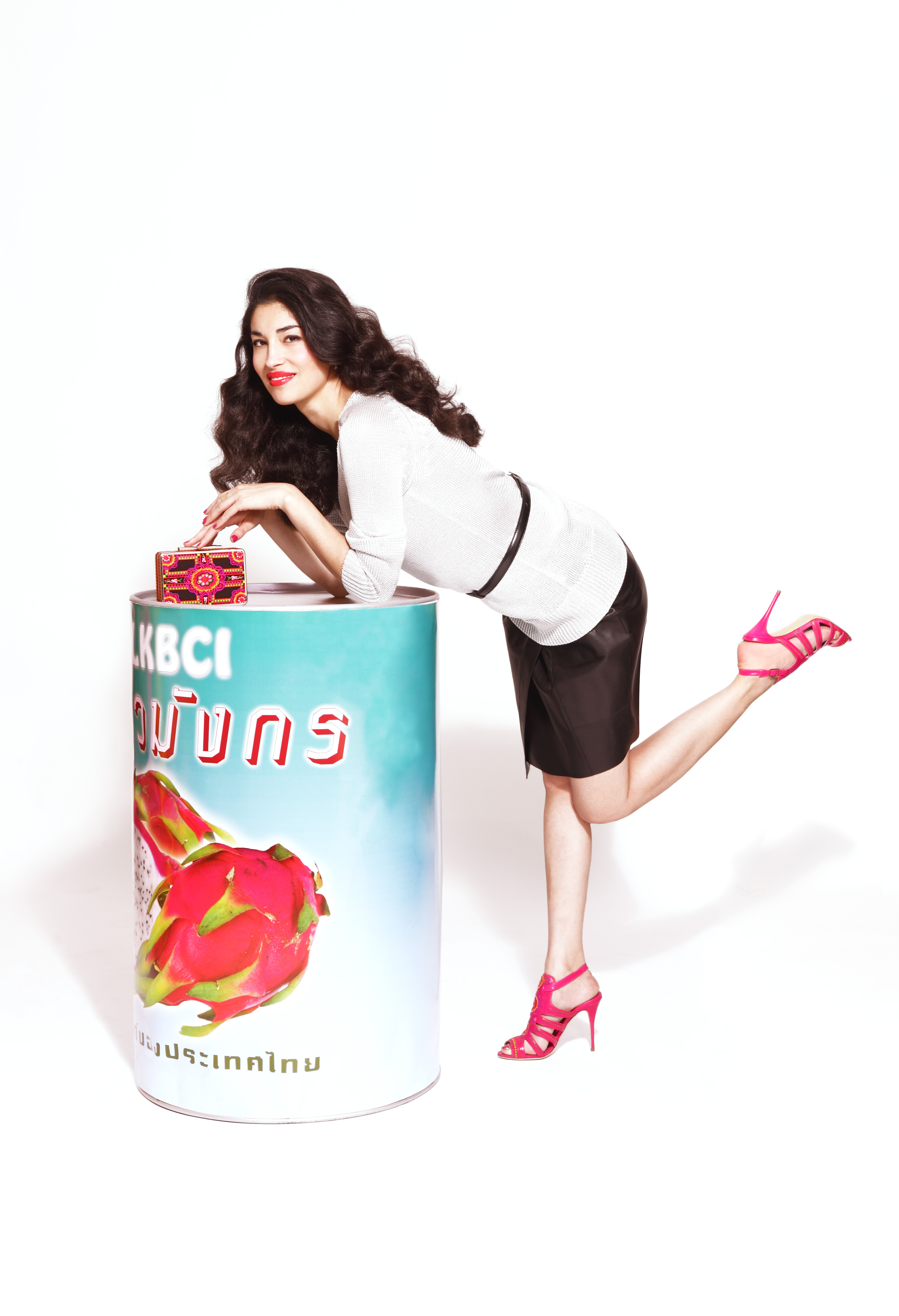 De limited edition collectie ‘L.K.Bennett London by Caroline Issa’ bestaat uit sandalen, naaldhakken met enkelbandjes, ‘kitten heels’, loafers en opvallende clutches. De ontwerpen zijn geïnspireerd op Thais borduurwerk met vurige kleuren. Fijne en opvallende oosterse bloemen, zigzag printjes en felle pompons zorgen voor een glamour zomerlook. De collectie is gebaseerd op de vele reizen die Caroline Issa gemaakt heeft naar Thailand.