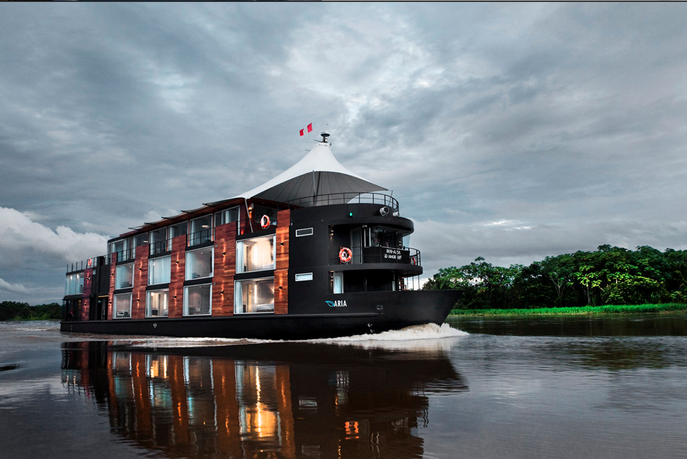 Het interieur van hotels heeft altijd mijn bijzondere belangstelling. Regelmatig sta ik in de lobby van een hotel mijn nek te verrekken om het interieur in mij op te nemen en de sfeer te proeven. Omdat ik ook gek op water ben staat het drijvende hotel Aria Amazon op mijn wishlist.