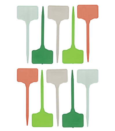 En ook de bloempotten mogen gezien worden. Je kunt kiezen uit verschillende tinten groen, grijs of wit. Om te onthouden wat je in de potten plant, maak je gebruik van de handige tuinprikkers.