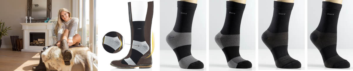 ZOOFF Socks zijn een 100% Nederlands product en zorgen ervoor dat je je laarzen met gemak aan én uit kunt doen en dat komt door de combinatie van verschillende materialen, en de sokken zijn gladder dan ‘normale’ sokken. De sokken zijn dan ook echt alleen maar bedoeld om in je laarzen te dragen. Dus je moet in huis uitkijken dat je niet uitglijdt.