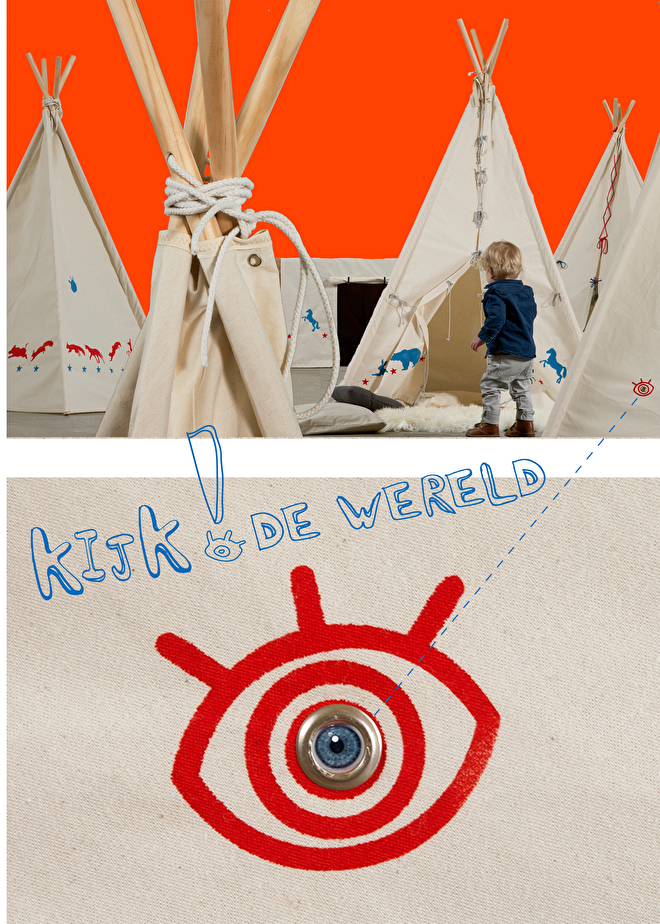 De neutrale Jippie-Ja-Jet-Tipi’s zijn er in verschillende maten en hand beschilderd met beestjes waaraan de tenten ook hun naam danken: Rennend Hert, Steigerend Paard, Rode Eekhoorn, Kleine Beer en de Slimme Vos. De tenten hebben leuke raampjes en spannende Peek-a-Boo’s: kleine gaatjes waardoor je vanuit de tent naar buiten kunt kijken.
