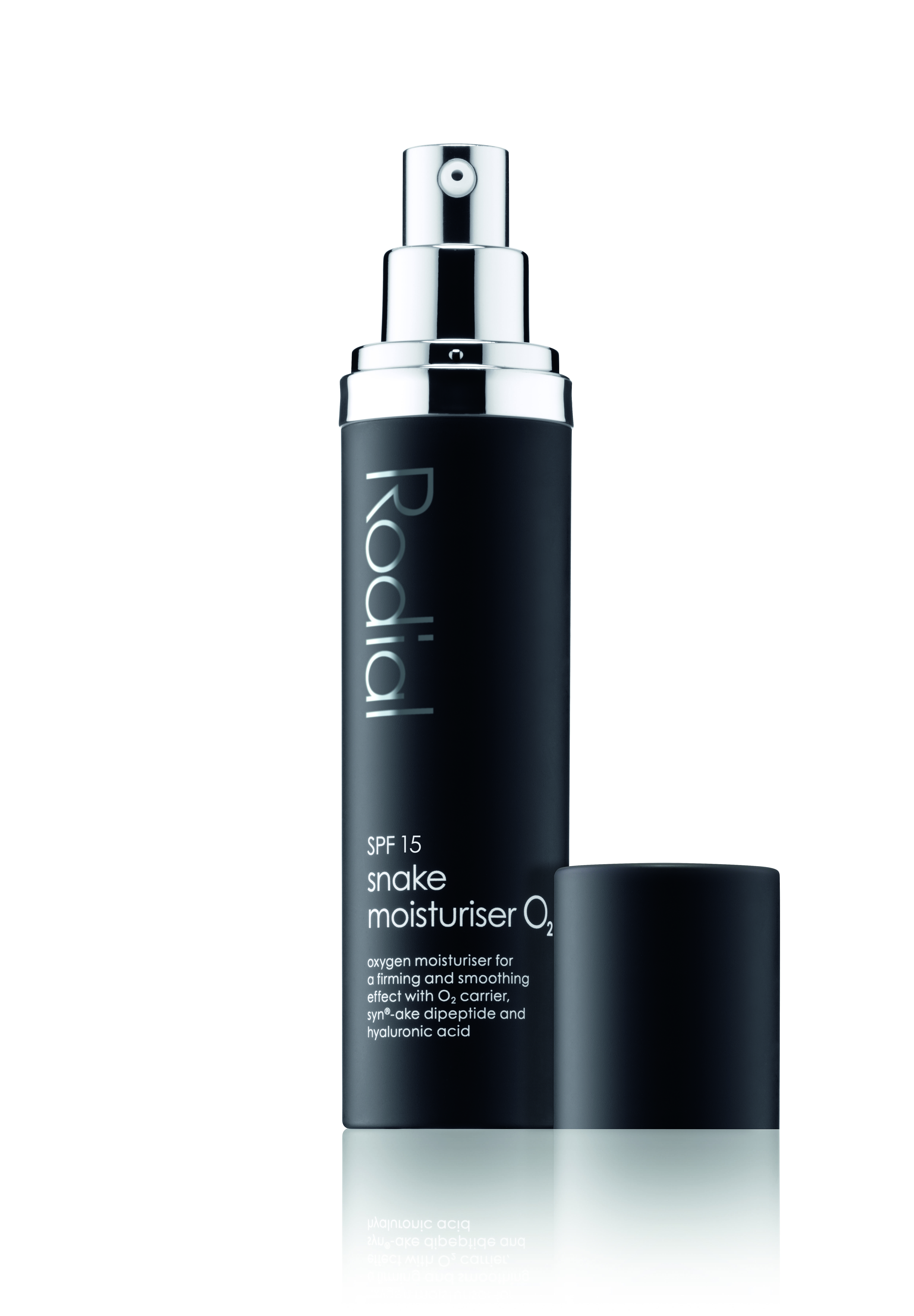 Snake Moisturiser O2; Deze lichtgewicht formule bestrijdt een doffe uitstraling die kan ontstaan door vervuilde lucht en verstevigd en revitaliseert de huid. Dankzij de snelwerkende zuurstofdrager Fiflow BTX lijkt de huid als herboren. Het product bevat VC-IP, gebaseerd op vitamine C, die de teint corrigeert waardoor de huid opnieuw straalt. In combinatie met de hydraterende werking van hyaluronzuur strijkt de SYN-AKE dipeptide fijne lijntjes en rimpels glad. De SPF 15 zonnefilter biedt dagelijkse bescherming tegen schadelijke UV A- en B- straling.