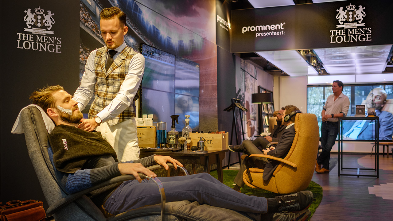 Prominent wil winkelen ook leuk maken voor mannen en heeft de 100 m2 grote pop-up store helemaal omgetoverd tot de Men’s Lounge by Prominent. De ultieme relaxplek waar de heren helemaal in de watten worden gelegd. Zo is er mogelijkheid om FIFA17 te spelen, series te kijken, een scheerbeurt te krijgen, muziek te luisteren maar ook bijvoorbeeld hapjes & drankjes te nuttigen.