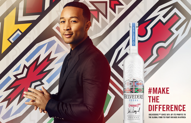 Ter ondersteuning van de samenwerking van Belvedere met (RED), heeft John Legend als ambassadeur van de #MAKETHEDIFFERENCE campagne in samenwerking met de meest bekende Ndebele kunstenares Esther Mahlangu het kleurrijke en krachtige design van de fles ontworpen. Dit design is geïnspireerd op de vier kernwaarden: eenheid, veiligheid, steun en verandering.