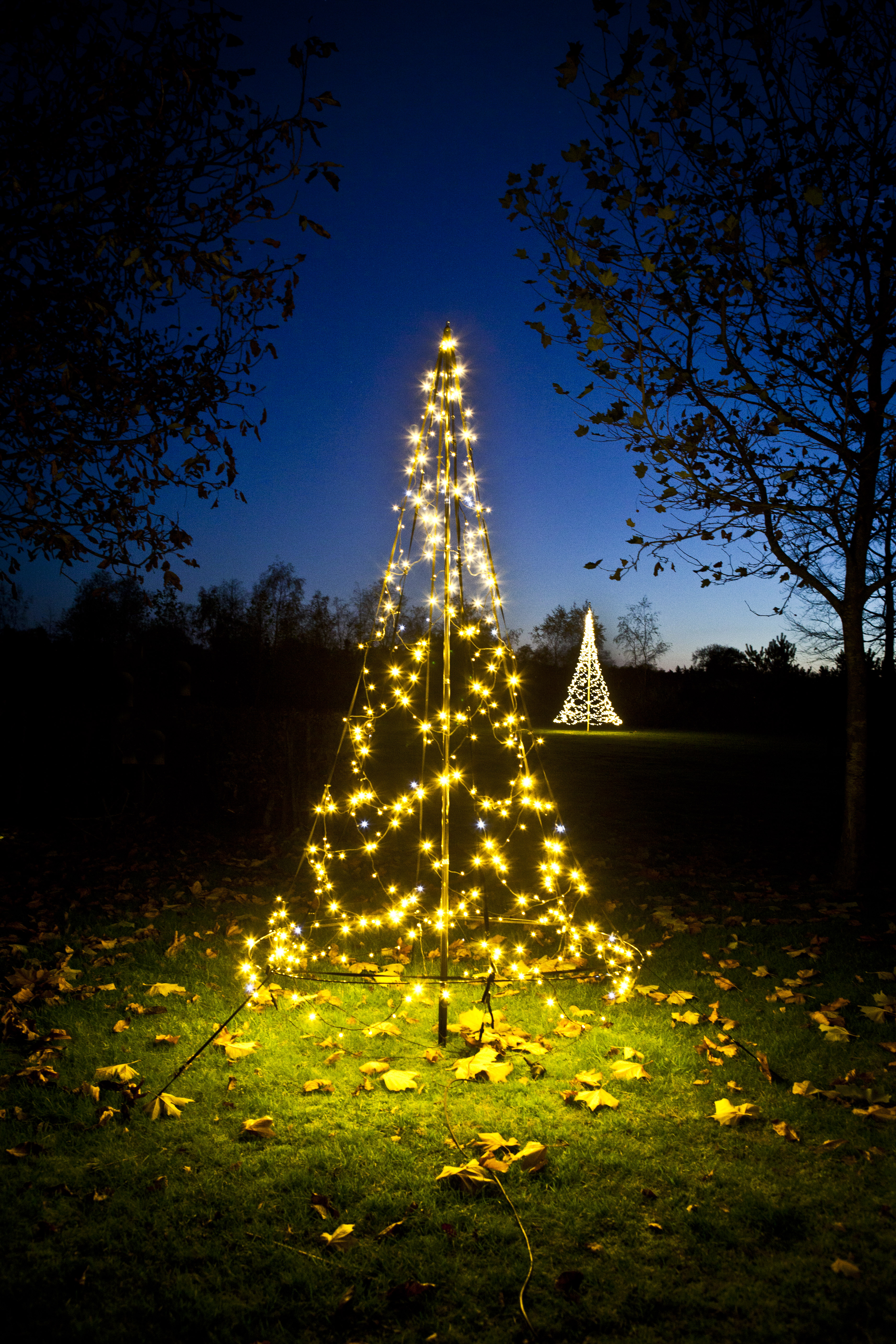 Er zijn maar liefst 16 verschillende modellen. Er is een ‘plat’ model van 2,10 meter hoog speciaal voor aan de deur. Deze hang je heel eenvoudig aan de deur dankzij de universele verstelbare bevestigingsband. Zo ben je binnen 10 minuten klaar. De vrijstaande modellen zijn verkrijgbaar van 1,45 tot en met 4,20 meter hoogte. Ideaal voor de zeer grote tuin zijn de imposante kerstboomvormen van 6 tot en met 10 meter. En door de grootte en de vele lampjes toveren ze elke vlaggenmast om tot een sprankelende én duurzame kerstboom.