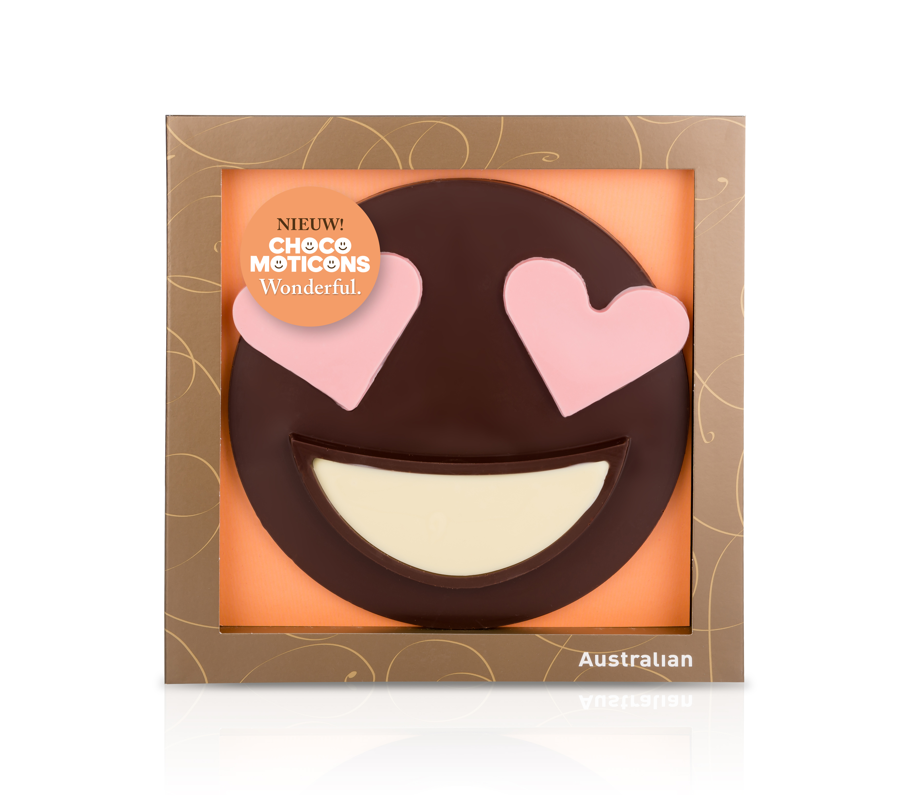 Een app, snapchat, video of uitgebreid gedicht. Er zijn tegenwoordig oneindig veel manieren om een boodschap, gevoel of emotie over te brengen. Hierbij worden niet alleen meer letters gebruikt, maar ook een aantal belangrijke karakters zoals emoticons. Australian speelt hierop in en introduceert dit jaar de leukste chocoladegifts van Sinterklaas: Chocomoticons! In deze emoticons zit nog meer chocolade dan in de reguliere letters en door verschillende typen chocolade te combineren kunnen de master-chocolatiers spelen met kleur en vorm.