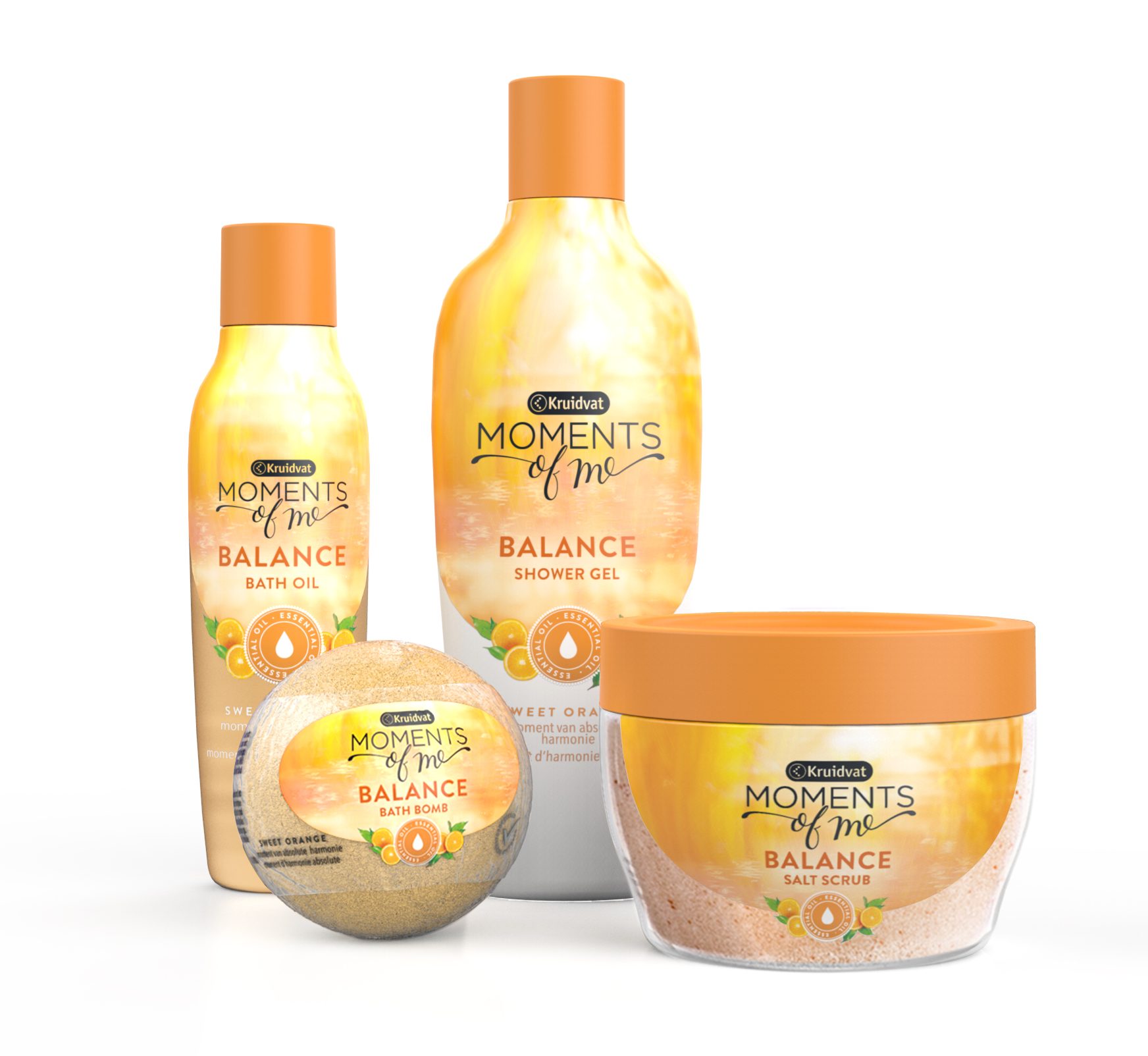 Behoefte aan balans in jouw leven? Voortaan is het creëren daarvan net zo makkelijk gezegd als gedaan met de balance producten uit de Moments of Me lijn. Deze rustgevende producten met een verrassende geur van zoete sinaasappel brengen je van top tot teen terug in absolute harmonie. Jouw lichaam en geest worden door deze producten in één klap verhelderd.