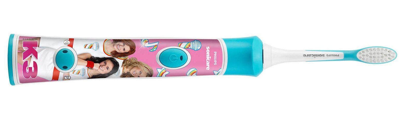 De Sonicare for Kids heeft een gekleurde ergonomische handgreep en wordt nu exclusief geleverd met K3 stickers om het frontje aan te passen en verschillende stickers om de tandenborstel verder op te vrolijken, zodat K3-fans de borstel aan hun eigen persoonlijkheid kunnen aanpassen. K3 maakt het tandenpoetsen leuker en stimuleert kinderen om langer te poetsen.