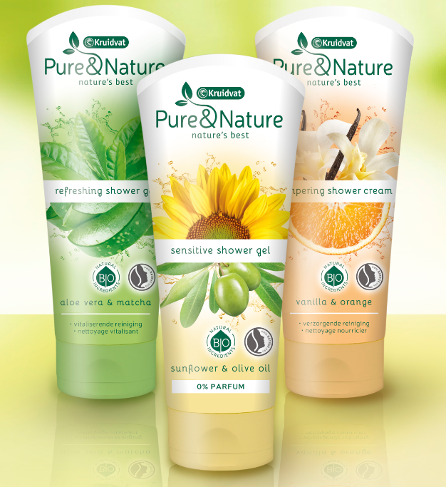 Kruidvat lanceert 2 nieuwe Pure & Nature showergels en een showercrème, en deze zijn ontwikkeld vanuit een passie voor schoonheid en de natuur. De combinatie van biologische ingrediënten is perfect afgestemd op de huid.