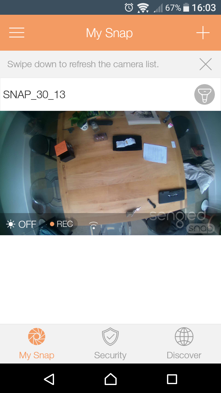 De Sengled Snap is een vrij grote lamp, met een E27 fitting (dit is een normale fitting) en in de lamp zit de groothoek videocamera verwerkt waarmee je hd opnames maakt. Ik heb de led lamp in een hanglamp boven mijn eettafel gedraaid en daarna ben ik aan de slag gegaan met het verbinding van de lamp met wifi.