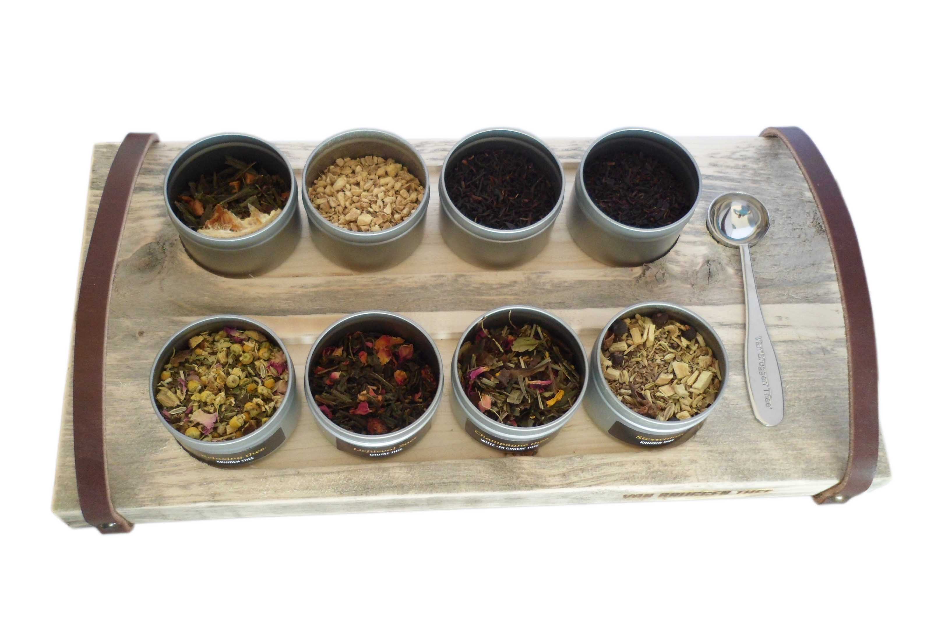 De Theeplank 2.0 is handgemaakt en verkrijgbaar in puur steigerhout, en je kan ook een naam in laten branden, en zo heb je gelijk een super origineel cadeau. De Theeplank 2.0 is inclusief theekaart, doseerlepel en uiteraard 8 blikjes gevuld met thee. Er is keuze uit verschillende soorten, van China Gunpowder, ook wel parelthee genoemd tot de verwarmende Aryuvedische thee. En alle theesoorten zijn verpakt in elegante blikjes met glazen deksel.