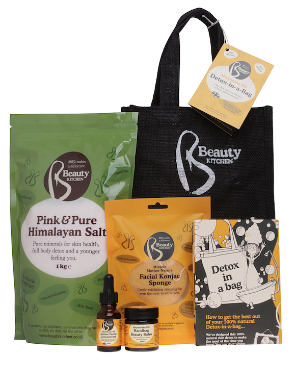 De nr. 1 is de Detox In A Bag, en hierin zitten vijf 100% natuurlijke producten die de huid reinigen, verzorgen en een heerlijke energieboost geven. In de tas zit 1 kg. Pink & Pure Himalayan Salt, Abyssinian Oil Handbag Beauty Balm, Abyssinian Oil Aroma Facial Concentrate, een Facial Konjac Sponge en een stap-voor-stap gidsje hoe mama het beste uit haar detox haalt. En dat voor slechts € 19,99, terwijl de waarde van de producten ruim € 50,- bedraagt.