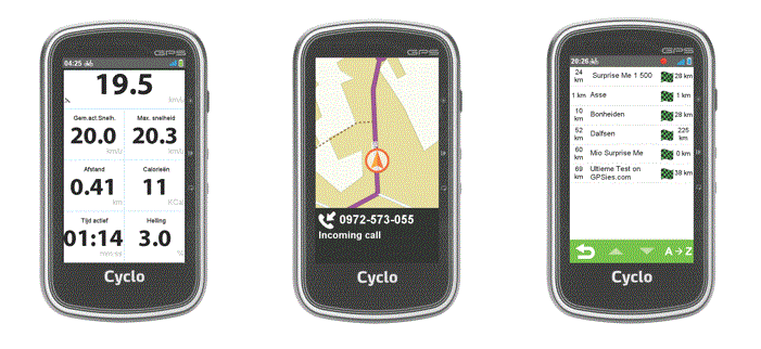 Voor de sportieve, fietsende man heeft Mio 2 nieuwe fietscomputers geïntroduceerd, de Cyclo 4oo en de Cyclo 600 serie. Zowel de 400 serie (Cyclo 400 / Cyclo 405 / Cyclo 405HC) als de 605 HC zijn uitgerust met een groter 4′ bij zonlicht leesbaar, anti-glare aanraakscherm, vooraf geïnstalleerde, complete fietskaarten van geheel Europa (38 landen), een eenvoudige en gebruiksvriendelijke navigatie met grote cijfers op het scherm, lap-functie en een eenvoudige menustructuur. En de Cyclo 605 HC biedt fietsers bovendien alles wat ze nodig hebben om hun prestaties te verhogen en gemotiveerd te blijven.