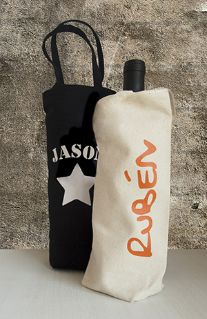 De wijntas (in zwart of naturel) is heel leuk om cadeau te geven (met natuurlijk een mooie fles wijn erin) maar ook op tafel staat ie top. Je kan kiezen uit 22 verschillende teksten en prints.
