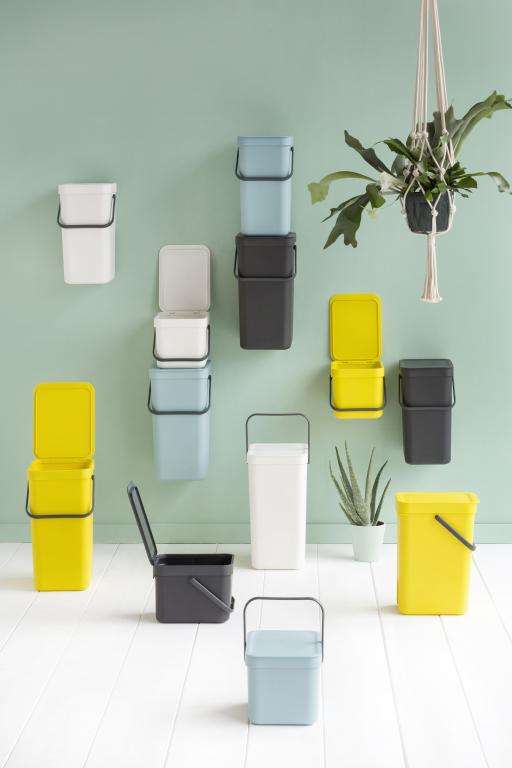 De Sort & Go collectie bestaat uit afvalemmers van 6, 12 en 16 liter in de kleuren Mint, Yellow, White en Grey. Het 6 liter-emmertje met stay-open deksel is ideaal voor op het aanrecht; je (groente)afval kan er direct in. Je kunt de afvalemmers van 12 en 16 liter gebruiken voor flessen, blik, plastic of wat je verder maar kwijt wilt. Het grote handvat en de handige grip aan de onderkant van elke afvalemmer maken het legen gemakkelijk.