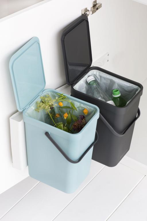 En wil je, ondanks hun fraaie kleuren en model, je Sort & Go bakken toch niet zien; er zijn ook inbouwsets voor 2 bakken van 12 of 16 liter in Mint en Grey. Je krijgt bij allebei een stevig ophangframe, schroeven en een duidelijke handleiding. Zo hang je ze makkelijk in ongeveer elke kast, of de deur nu naar links of naar rechts draait. En dankzij het frame hangt er geen gewicht aan je deurtjes en je krijgt natuurlijk 10 jaar Brabantia garantie.