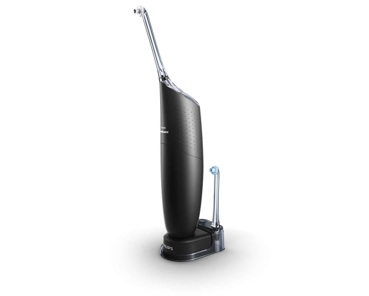 Hij heeft een nieuwe hoogwaardige spuitkop en door de krachtige lucht- en microdruppeltechnologie wordt tandplak nog effectiever en efficiënter verwijderd;