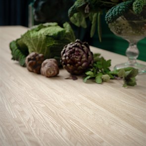 Het PINNARP werkblad heeft de uitstraling van massief hout, maar de designers van IKEA hebben voor dit werkblad massief essenhout op spaanplaat geplaatst. Dankzij deze slimme techniek is er minder hout nodig. En dat is weer goed voor het milieu. Het werkblad is uiteraard wel slijtvast en bestand tegen water en vocht.