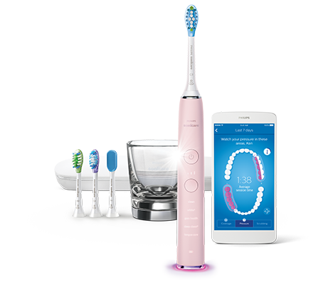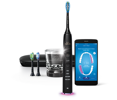 Via de ingebouwde Smart-sensortechnologie krijg je persoonlijk poetsadvies via de Philips Sonicare app. Deze app is via Bluetooth gekoppeld aan je tandenborstel waardoor er gegevens uitgewisseld kunnen worden. Een locatiesensor zorgt ervoor dat je op een 3D-kaart van de mond kan zien waar je wel of nog niet gepoetst hebt. De DiamondClean Smart geeft via een speciale schrobsensor ook een seintje als je je tanden te veel schrobt in plaats van zachtjes poetst. Daarnaast zorgt de druksensor ervoor dat de lichtring op het handvat van de tandenborstel gaat branden als je teveel druk zet tijdens het poetsen. De app biedt tevens ondersteuning bij het opvolgen van tandartsadvies. Zijn er bijvoorbeeld probleemgebieden vastgesteld, dan worden deze gemarkeerd op de 3D-kaart. Bovendien ontvang je proactief signalen die je helpen herinneren om extra aandacht te besteden aan die specifieke gebieden. Zo kun je gemakkelijk inzicht krijgen in jouw poetsgedrag en dit zelfs delen met de tandarts of mondhygiënist(e).