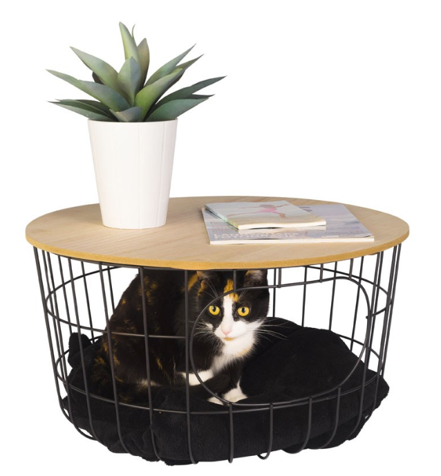 Ligt je kat (of kleine hond) graag in een mandje? Maar heb je te weinig ruimte of wil je geen plekje inruimen voor een mand? Wat vind je dan van (bijzet)tafel Odense? Dit is nl. een opbergmand en tafel in één.