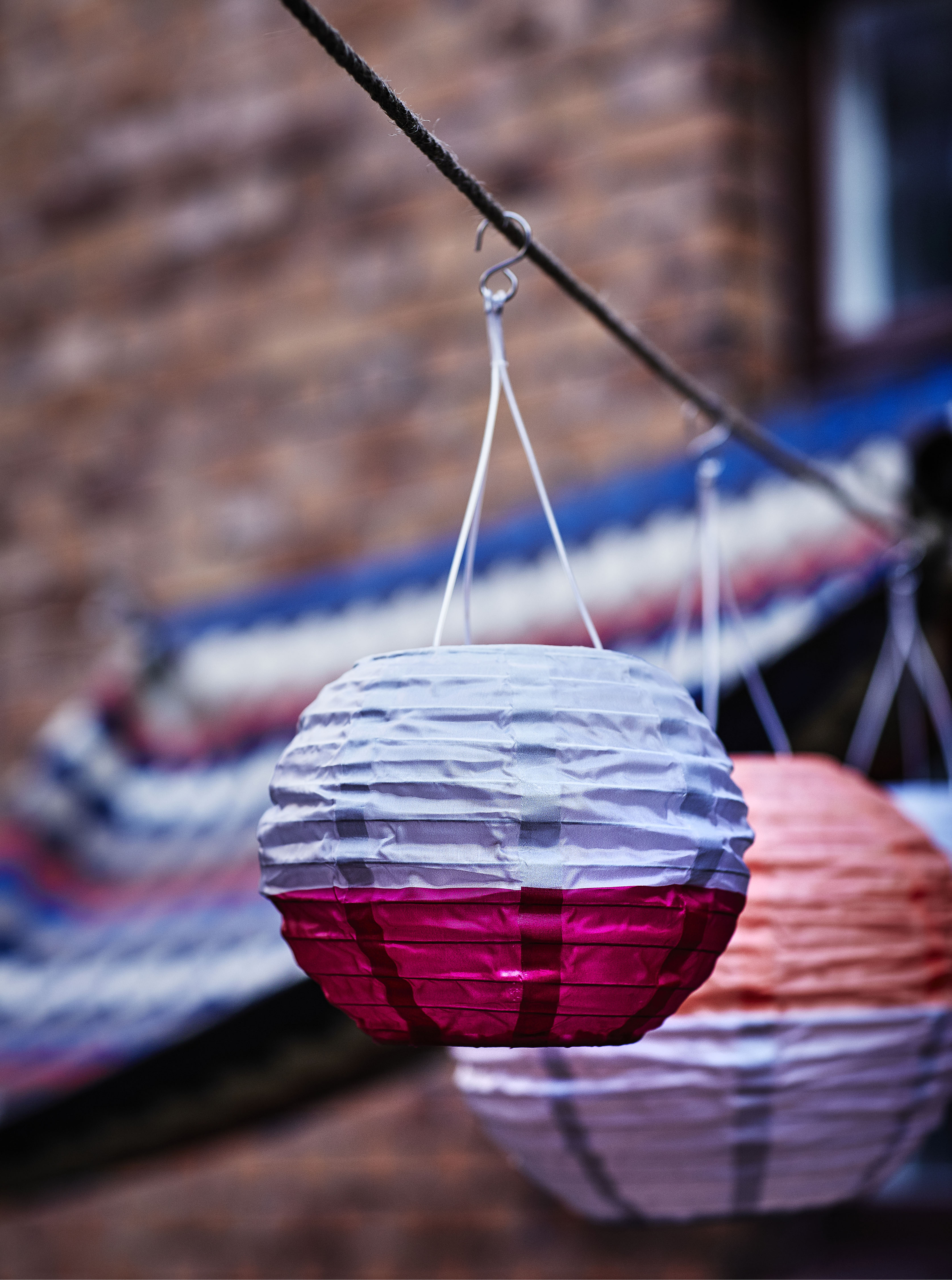 Nodig je vrienden, buren of familie uit en vier de zomer. Zet je leukste playlist op, maak zelf heerlijke cocktails en creëer een magische sfeer met een verzameling aan SOLVINDEN lampionnen en lampionsnoeren, in dromerig wit of zomerse kleuren.
