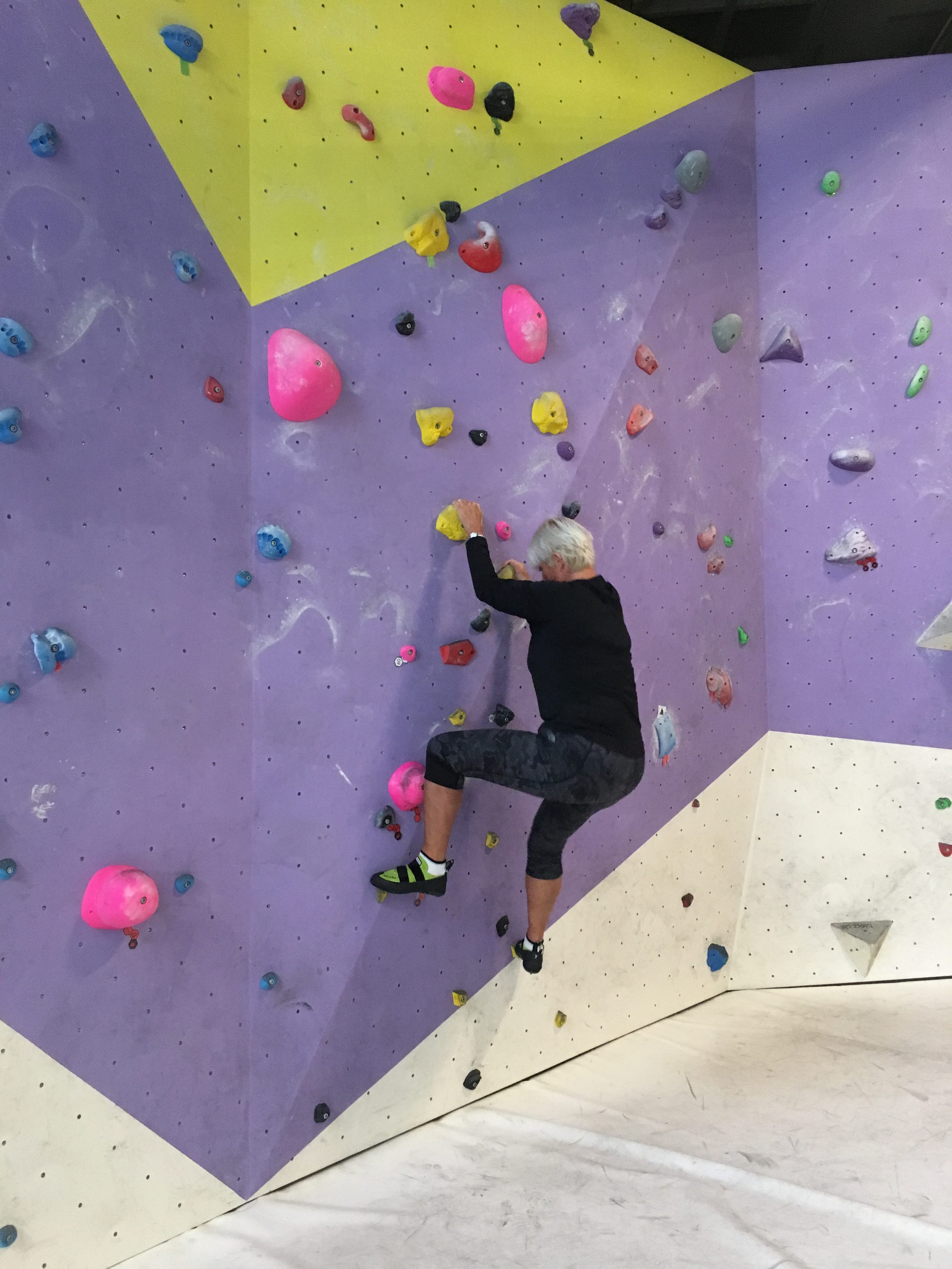 In Amsterdam kan je op verschillende locaties boulderen en wij waren uitgenodigd bij Het Lab. Zoals ik al zei is boulderen klimmen zonder touwen, maar het voordeel is dat de klimmuren niet hoger zijn dan 4,5 meter. (Officieel is boulderen: boven op een rotsblok klauteren.) Maar omdat er binnen geen rotsblokken beschikbaar zijn, zijn er klimwanden met routes gebouwd. Je kiest 1 kleur en je gaat dan net zolang klimmen totdat je bovenaan de wand bent. Ben je bang om te vallen? Je krijgt eerst een cursus vallen en overal liggen grote valmatten. De gevorderden boulders springen zelfs van blok naar blok en ook op zijn kop hangen is mogelijk. Ik vond het reuze leuk om te doen, en is ook zeker een aanrader voor dames die eens iets anders willen tijdens een vrijgezellenfeest of een speciale verjaardag.