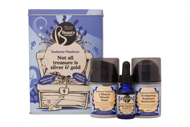 Beauty Kitchen Seahorse Plankton #SaveStan Skincare Treasures set en met deze aankoop steun je de Seahorse Trust: je adopteert namelijk voor vier maanden een zeepaardje via de Seahorse Trust! De set bevat de High Definition Facial Oil, de Everlasting Radiance Moisturizer en het 5 Minute Miracle Mask.