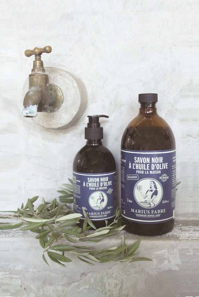 De Marius Fabre zepen zijn verkrijgbaar bij de betere drogist, concept stores en online via diverse webshops. De zwarte olijfzeep collectie bestaat uit het 500ml pompflesje, de 250ml tube, de 500 ml spray voor huis of tuin en een fles van een liter. De zeep is zuinig en gemakkelijk in gebruik en vervangt moeiteloos een kast vol huishoudproducten.