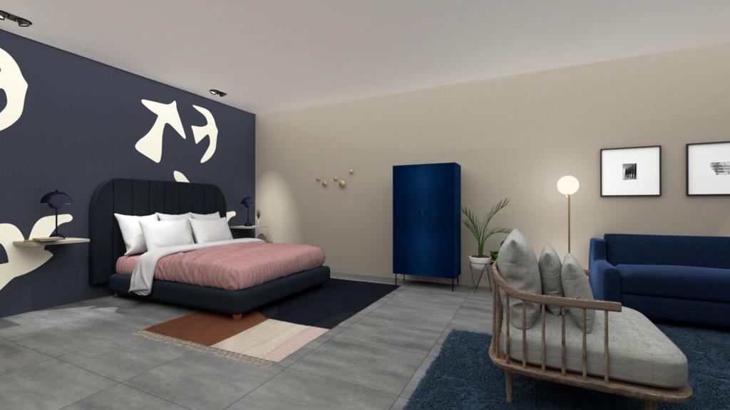 Een gezamenlijke lobby is er niet, net zo min als een druk restaurant. Bij Hotel Pistache is het gewoon lekker en in alle stijl thuiskomen. De inrichting van het hotel past bij het karakteristieke gebouw en is samengesteld met eigenzinnige blik; denk aan een mooie visgraatvloer, lampen van Flos, eigentijdse meubels met stoffen van Kvadrat van o.a. FEST Amsterdam en &Tradition, keukens van het Zweedse Superfront en een zacht kleurenpalet met (mosterd)gele, blauwpaarse en roze accenten. Aan de muur en op de kussens prijken de illustraties van designer Anne Olde Kalter, die ook de grafische vormgeving voor het hotel deed.