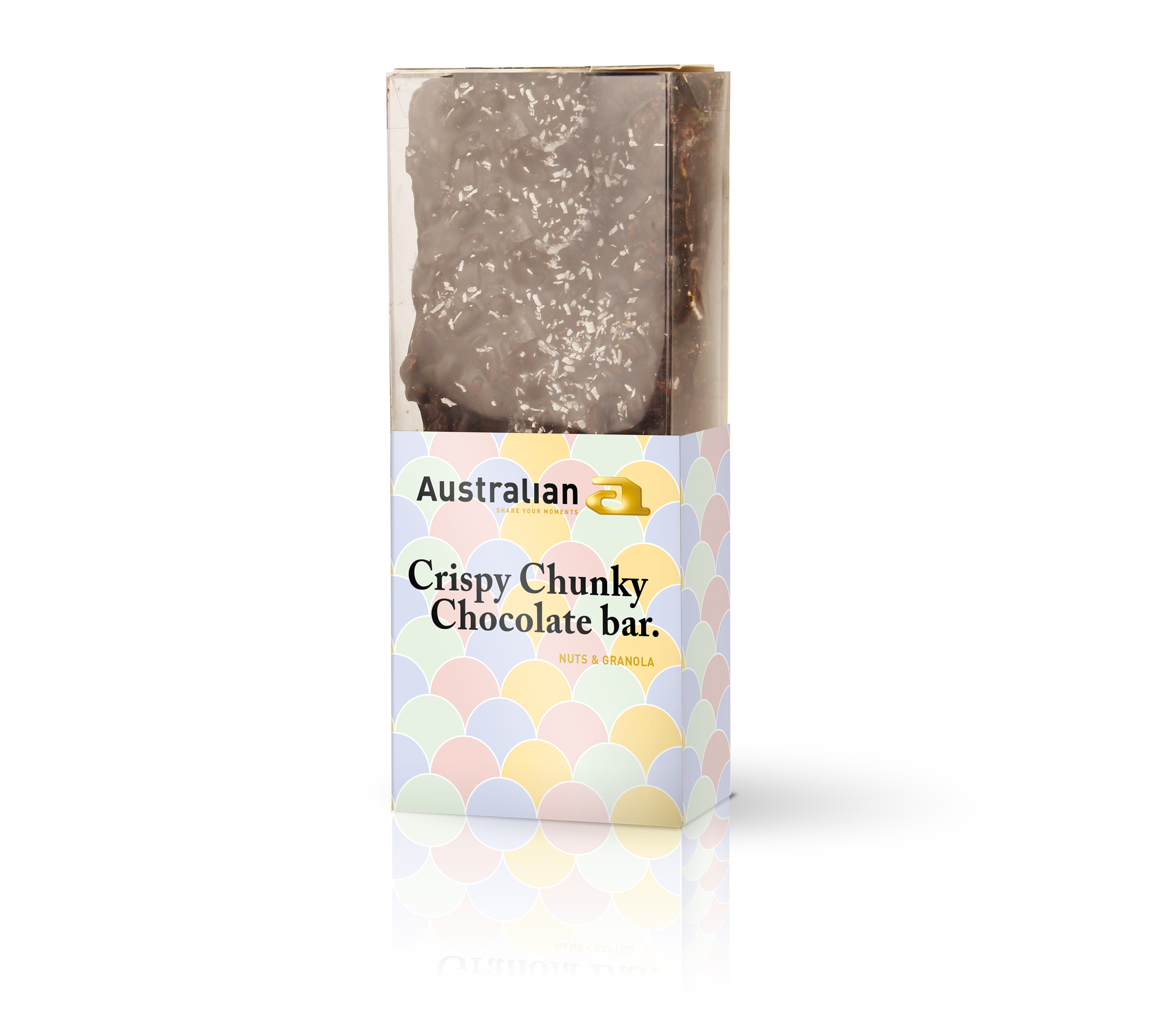Het assortiment van deze eggclusive collectie zal iedereen verleiden. Want wie wil er nu niet zijn mandje vullen met deze heerlijk eitjes?! Australian zorgt voor de ultieme chocoladebeleving en voegt dit jaar de Crispy Chuncky Chocolate bars en de Rocky Roads toe aan haar collectie, bestaande uit 100% natuurlijke ingrediënten en ambachtelijk met de hand bereid.