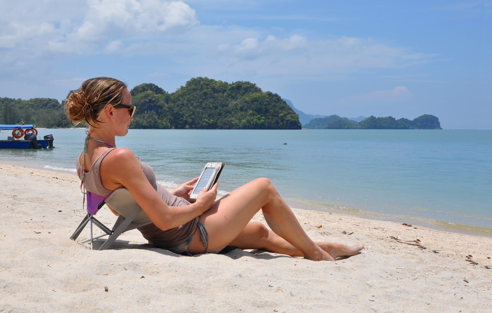 Ik ben een echte zonaanbidster en ik vind het dan ook heerlijk om op het strand te liggen, maar plat op mijn rug liggen vind ik niet fijn. Ik wil nl. graag een tijdschrift of een boek lezen of gewoon lekker ‘mensen’ kijken. En dan is het handig als je hoofd of je rug ondersteunt wordt. En dan leg ik dus vaak een tas onder mijn hoofd of onderin mijn rug als steuntje, maar ideaal is het niet.