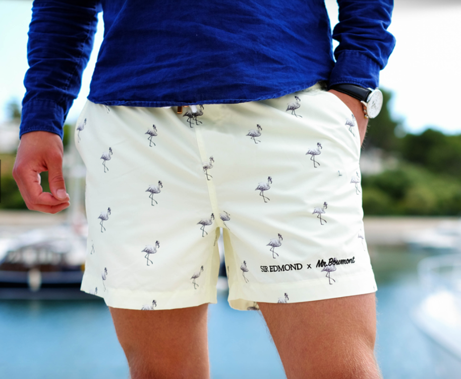 Gin en zwemmen een ongewone combinatie? Niet volgens Sir Edmond Gin want samen met Mr.Bowmont lanceert de Amsterdamse ginmaker een limited edition zwembroek met flamingoprint.