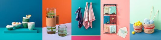 Rust en eenvoud maken het thema ‘Love nature’, ontwikkeld uit liefde voor de natuur. Denk daarbij aan duurzame materialen, zachte aardetinten met veel groen en eenvoudige vormen. ‘A colourful story’ kenmerkt zich door uitbundige kleuren en prints: een bombarie aan gezellige, levendige producten die door speelse vormen en een mix van materialen op zichzelf staan. Het thema ‘Surprising design’ laat vooral vernieuwende ontwerpen zien. Hier wordt ‘out of the box’ geëxperimenteerd met materialen en vormen, speels maar toch gestileerd. Vriendelijk, origineel en grafisch design.