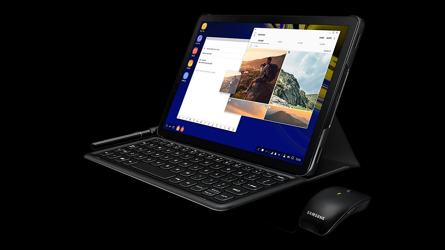 De Galaxy Tab S4 werkt als een desktop; met een taakbalk, de mogelijkheid om meerdere vensters weer te geven en bekende handelingen zoals drag-and-drop. Als je een echte computerervaring wilt, start dan Samsung DeX via het Quick Panel en sluit een toetsenbord of muis aan die geschikt zijn voor Android. Je kunt de Android-interface op de tablet blijven gebruiken, terwijl je Samsung DeX gebruikt op een groter scherm. Of kijk naar de monitor en gebruik de tablet als een touchpad, tekentablet of touch-toetsenbord.