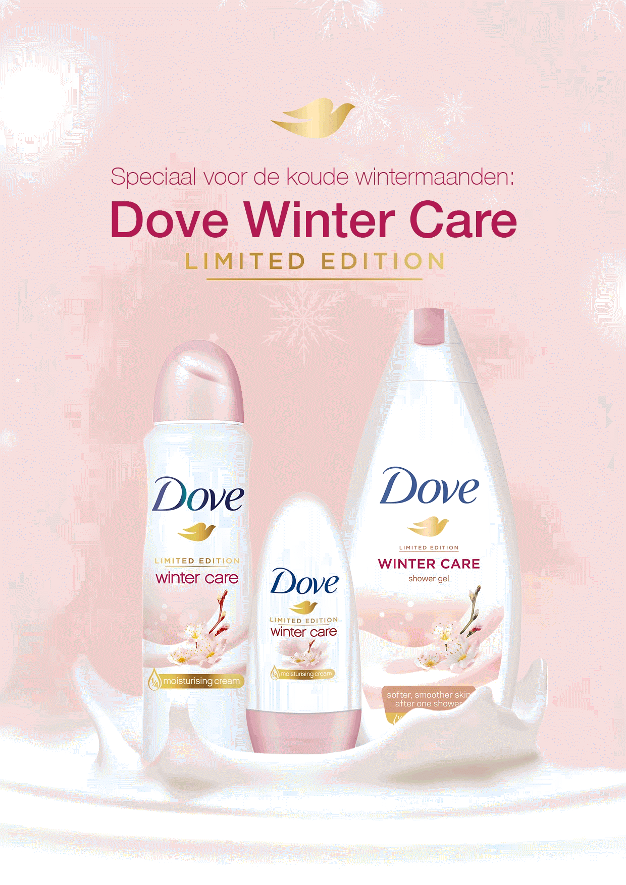 Dove Winter Care is speciaal bedoeld voor de koude wintermaanden: de verzorgende douchecrème bevat milde bestanddelen die je huid zowel reinigen als voeden.