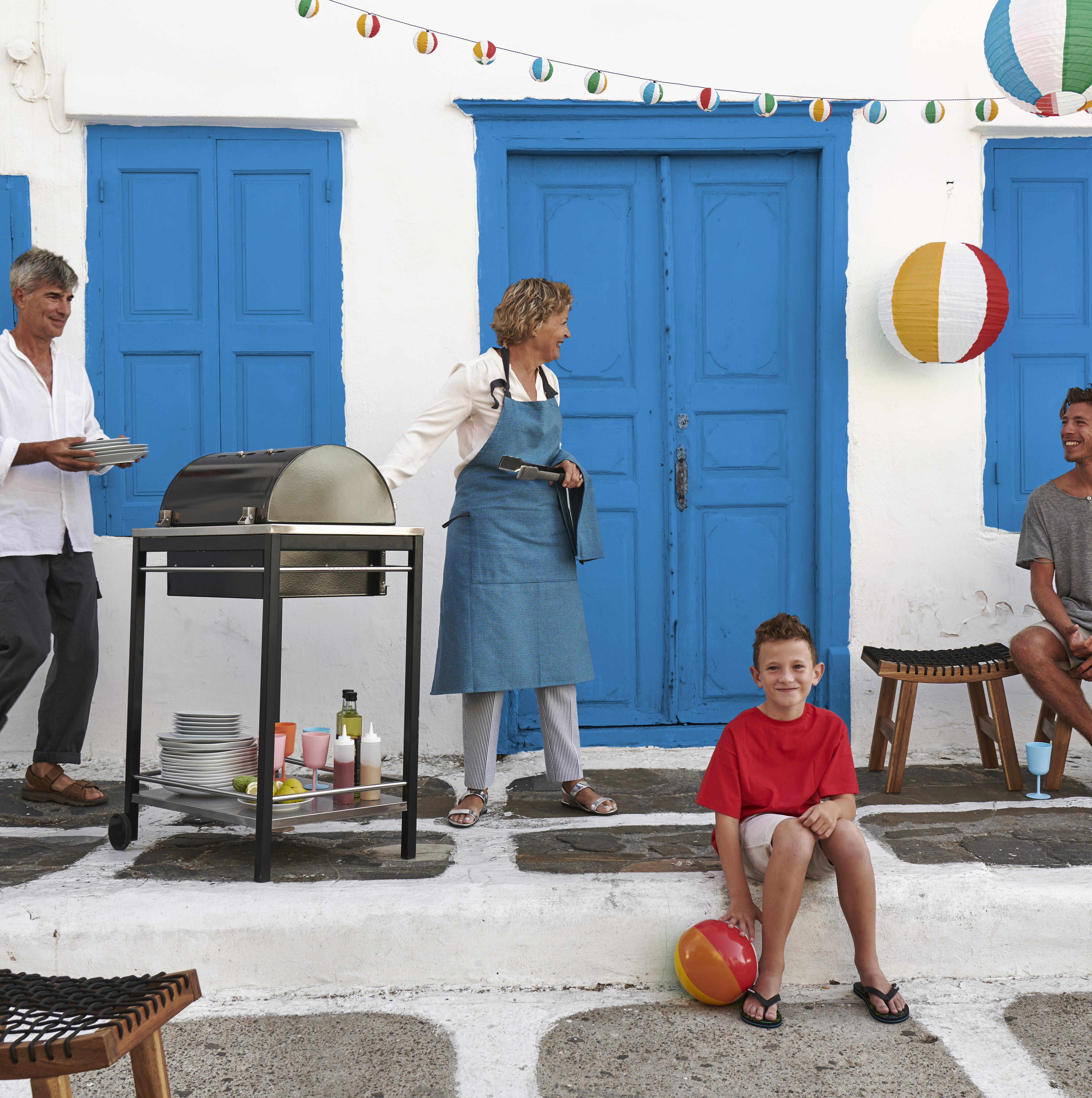 Met de KLASEN houtskoolbarbecue zet je overal een feestmaal op tafel of dat nu in de tuin, op het strand of in het park is. Op het onderstel met blad zet je borden, bekers en sauzen neer. De ingrediënten voor de barbecue neem je mee in de SOMMAR 2019 afsluitbare plastic kommen en je serveert de gerechten op de borden en dienbladen met (bloemen)print en de glazen met roze bloemen en de plastic bekers en bakjes in geel, oranje en blauw zijn ook nog eens heel handig. De houten STACKHOLMEN kruk met geweven zitting van zwart touw neem je makkelijk mee naar een spontane picknick of barbecue.