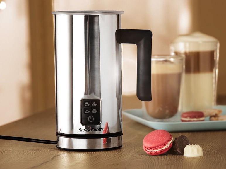 En eigenlijk wilden we, stiekem, een rvs model, en toen kwamen we uit bij de Nespresso Aerocinno, de Illy melkopschuimer én de Silvercrest elektrische melkopschuimer. De eerste 2 zijn niet goedkoop (euro 79,- per stuk) en de Silvercrest kost euro 19,99. Nu kan je denken, je bent vast voor een duur bekend merk gegaan, maar niks is minder waar. We hebben de Silvercrest besteld, deze is online te koop via Lidl-shop.nl.