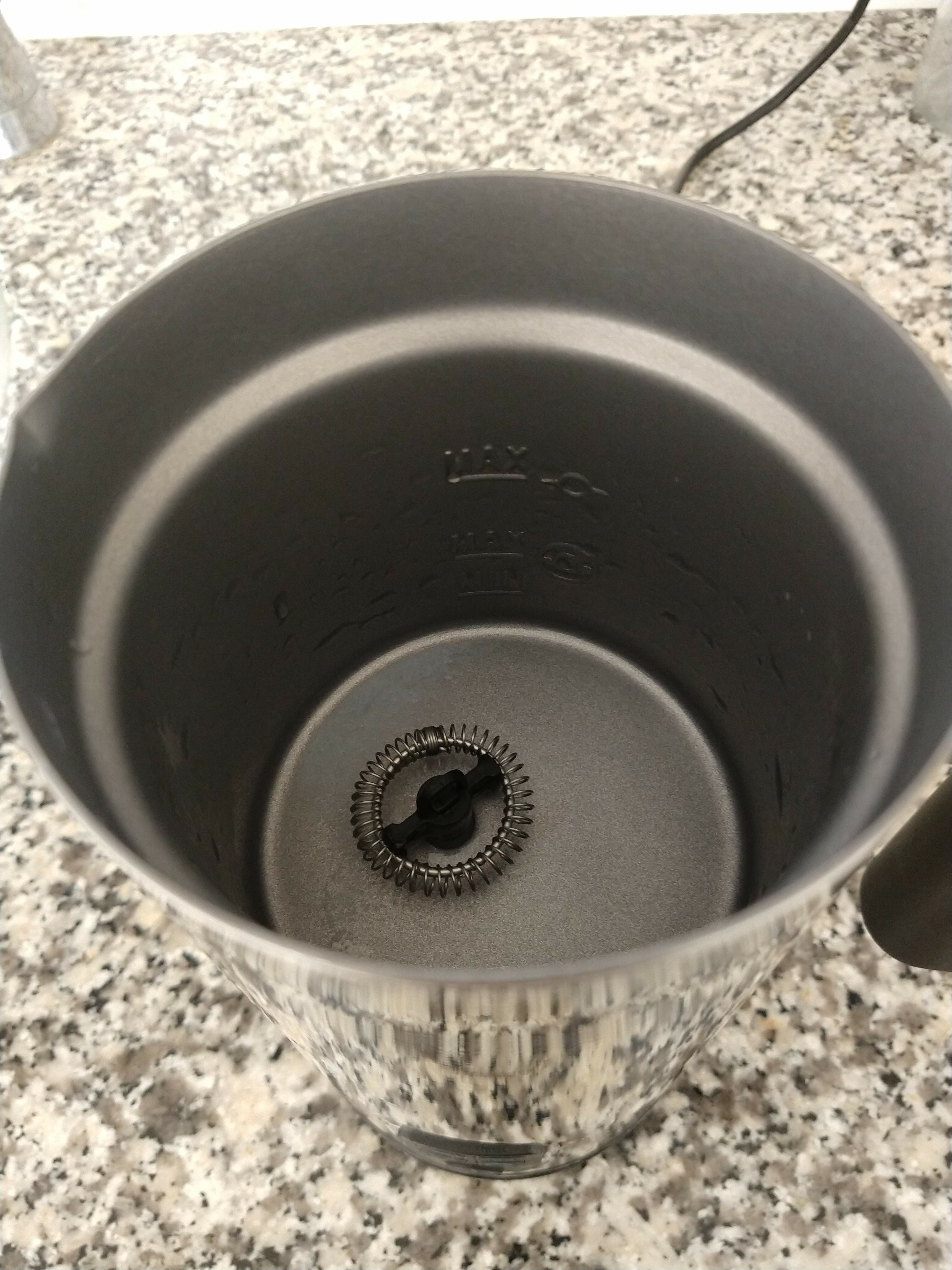 Dus weer einde verhaal,zo nieuwsgierig als ik ben heb ik het apparaat uit elkaar gehaald,daar waar de garde draait het motortje dit was helemaal verroest,dus….ook deze opschuimer gaat naar de daarvoor bestemde afvalbak bij de gemeente reiniging.jammer ik koop nu maar zo,n hoog glas voor in de magnetron met opschuimer.