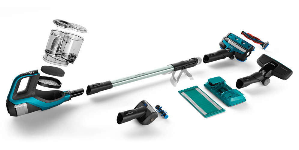 De verschillende accessoires zijn eenvoudig en met één klik te gebruiken. Met een enkele klik koppelt je het waterreservoir van het stofzuig- en dweilmondstuk los om alleen te stofzuigen.