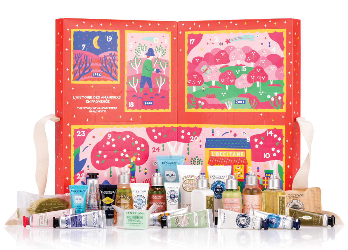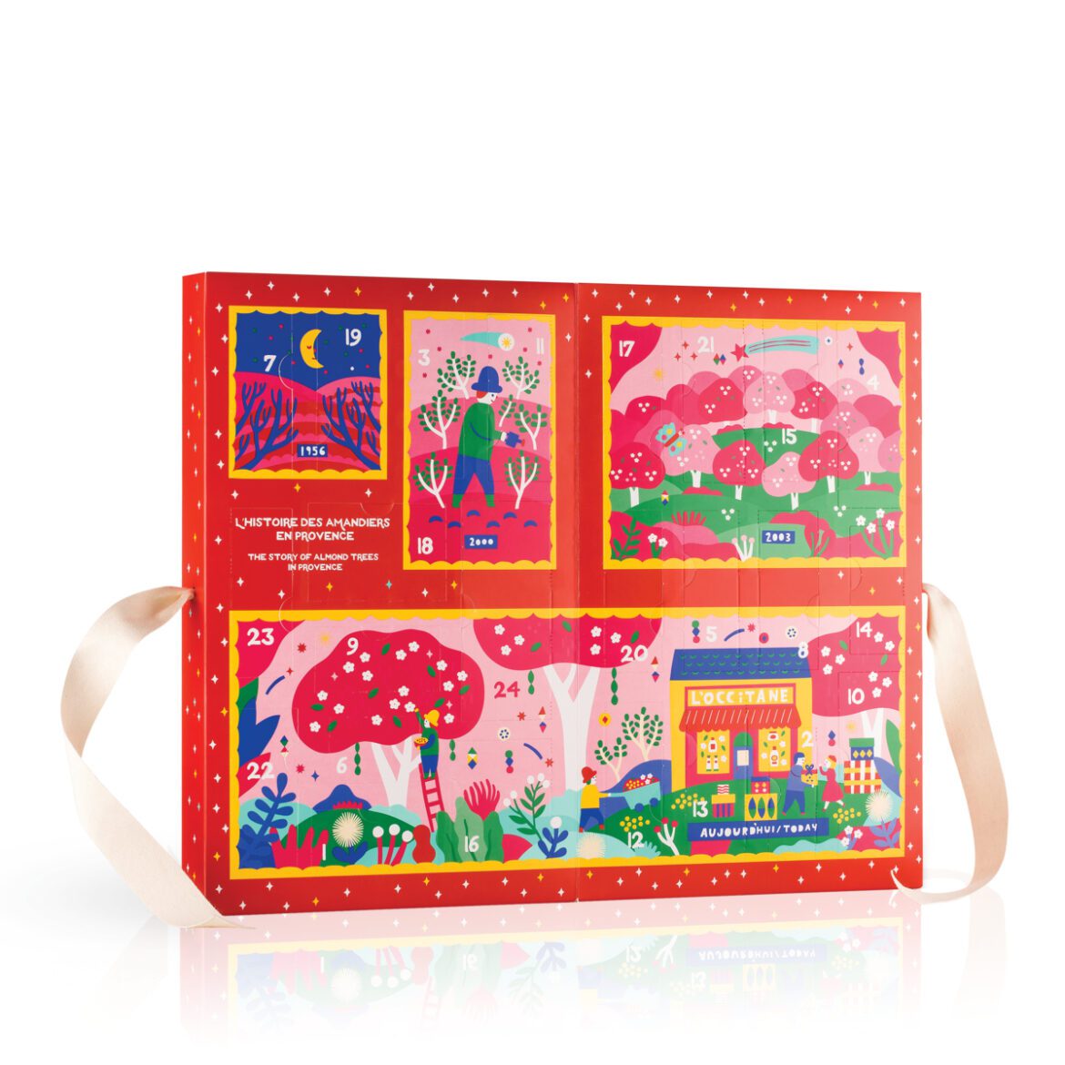 Achter elk van de 24 vakjes vind je een schat! Almond Shower Oil, Ultra Thirst-Quenching Gel, Intensive Hand Cream… Voor iedere dag een verrassing en met nieuwe producten van L’OCCITANE die het verhaal van de kalender nog leuker maken dan normaal. De kalender ziet eruit als een sprookjesboek en vertelt je aan de hand van een aantal