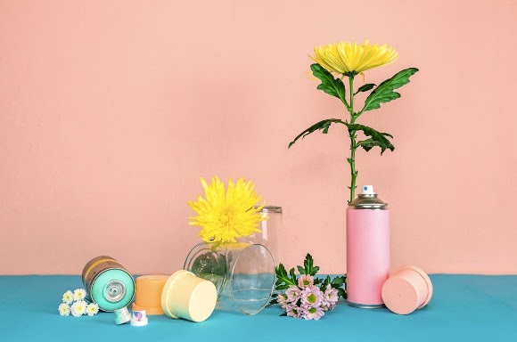 Wat heb je nodig voor een mooi DIY-vaasje? Twee kleuren verfspuitbussen, een oude vaas of pot, en jouw favoriete chrysanten. Vergeet niet om een aantal oude kranten als ondergrond te gebruiken voor verfspetters.