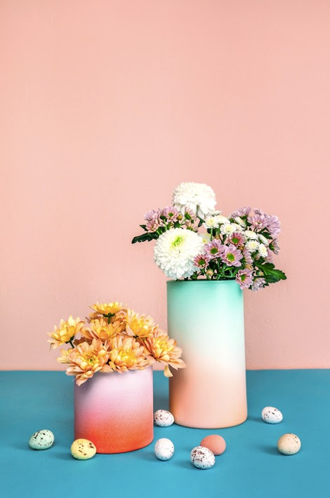 Wil je het bij 1 kleur houden? Dan zou je ook kunnen kiezen om halverwege je vaasje geen verf meer aan de brengen, zodat je een transparante bovenkant krijgt. En laat de verf altijd goed drogen.