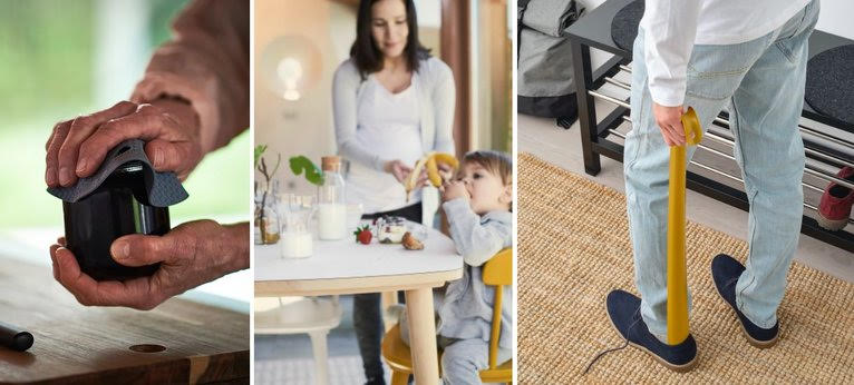 Er zijn momenten dat we allemaal een beetje extra comfort en ondersteuning nodig hebben. Tijdens het ontwerpproces van OMTÄNKSAM is er veel aandacht besteed aan de wensen en voorkeuren van ouderen en jongere generaties die soms tijdelijk of permanent behoefte hebben aan wat extra ondersteuning in huis. Van een schoenlepel die je staand kan gebruiken na een wandeling tot een antislip pot-opener voor als je handen wat minder kracht hebben dan voorheen. Het zijn kleine dingen die bijdragen aan een optimaal leven thuis.