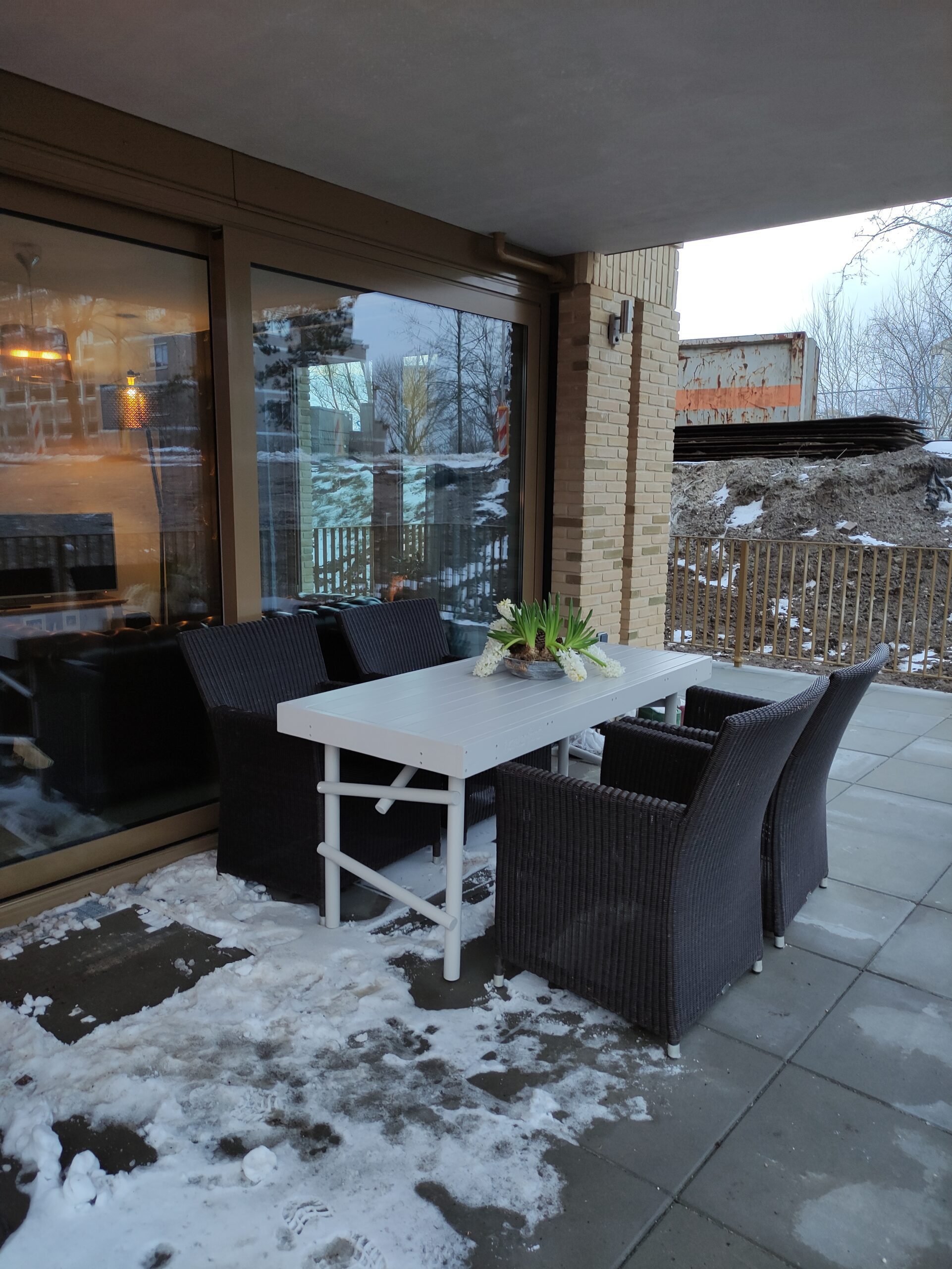 Terwijl de weervoorspellingen kou, sneeuw en wind aangaven, vonden Testman en ik het tijd om op zoek te gaan naar een nieuwe tuintafel. We hebben, voor onze verhuizing, van een heel groot huis met een hele grote tuin naar een appartement met een heerlijk ruim terras, veel weggegooid waaronder de tuintafel. Dus werd de zoektocht gestart.