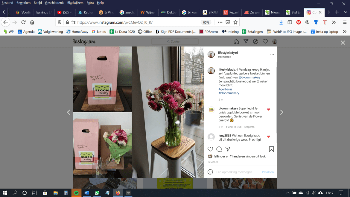 Ik heb in februari jl. al een artikel geschreven over de Bloommakery boeketten service. Je kunt bij hen, online, je eigen Gerbera boeket samenstellen. Dus toen ik de mogelijkheid had om een Bloommakery boeket te kopen, ben ik gelijk aan de slag gegaan, en de oplettende Lifestylelady.nl Instavolger heeft het boeket al gezien.