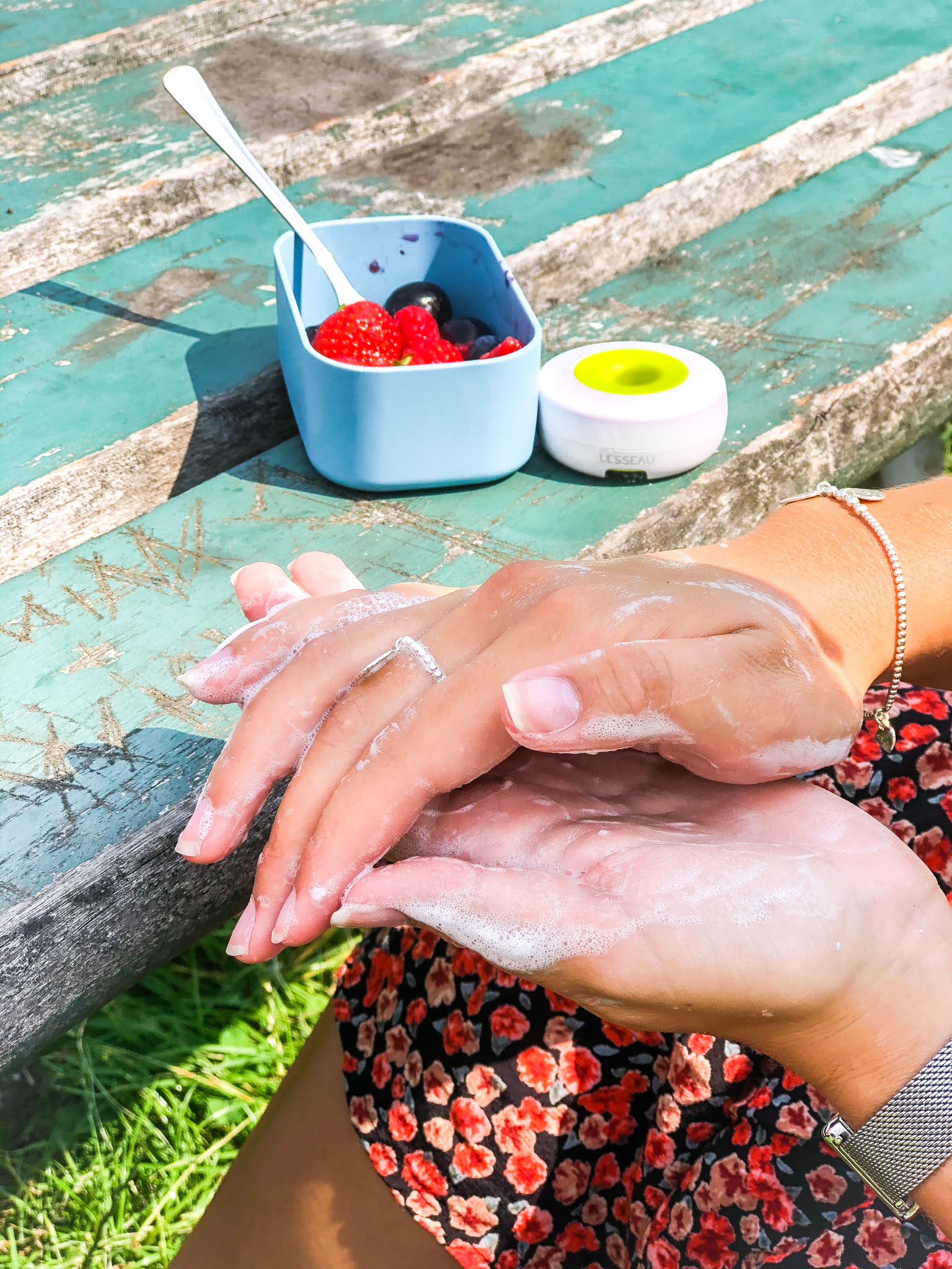 Traditionele handzeep is de beste zeep om je handen te wassen en bacteriën te verwijderen. Ondanks dat bacteriën niet op een stuk zeep kunnen overleven, wordt een nat en pas gebruikt stuk zeep als onhygiënisch ervaren. Daarom is de innovatieve LESSEAU Travel soap dispenser ontwikkeld. De dispenser heeft de vorm van een donut. Zodra je aan de bovenste ring draait, valt de zeep in je handen. Met de toevoeging van kraanwater was je je handen makkelijk en hygiënisch schoon. Met één zeepje van LESSEAU kun je je handen 350 tot 500 keer wassen. Dit bespaart veel water en overtollig plastic. De inhoud van een normale fles vloeibare zeep bestaat namelijk uit slechts 4%(!) wasmiddel. De rest is water. De dispenser is makkelijk voor thuis én op reis; het past in elke tas en lekt niet.