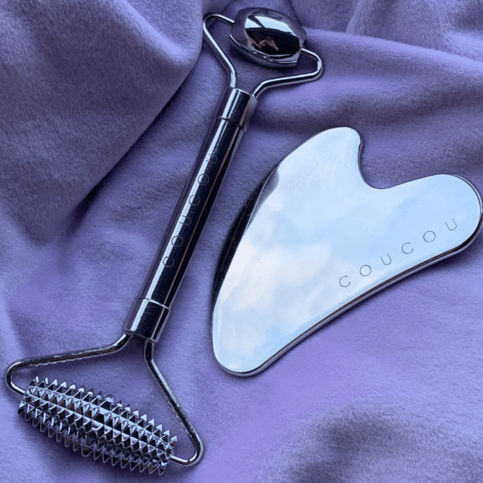 De nieuwste Coucou beautytool lancering (eind oktober beschikbaar), de Coucou Cryo Set omarmt het eeuwenoude ritueel van cryotherapie, waarbij gebruik gemaakt wordt van koude temperaturen om de bloedcirculatie en de lymfedrainage te stimuleren. In ca.1700 zou de Russische keizerin Catharina de Grote al elke ochtend ijsblokjes op haar gezicht, hals en decolleté aanbrengen om haar huid te laten stralen. Deze DIY versie van de professionele cryo facial anno 2021 is nu ook in je eigen badkamer beschikbaar en bestaat uit een Cryo Gua Sha en een Cryo Roller met spikes en is gemaakt van 100% roestvrij staal: stevig, antibacterieel en bovenal van nature koud. De Coucou Cryo Roller en Gua Sha brengen de natuurlijke processen van de huid op gang. De koude massage bevordert de collageenproductie waardoor fijne lijntjes verminderen, stimuleert de bloedcirculatie die zorgt voor een stralende glow en stimuleert de afvoer van giftige stoffen (lymfedrainage) die vochtophoping, wallen en donkere kringen vermindert. Tot slot heeft de koude therapie een kalmerend effect op de huid, minimaliseert het uiterlijk van vergrote poriën en vermindert de olieproductie en (onderliggende) ontstekingen van de huid.