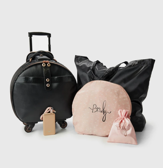 Allereerst het prijsverschil; de Base Smart Birdy is te koop voor $ 699,00 en de Wings 2.0 is er vanaf $ 949,00 t/m $ 1.499,00. Wat is er bij de Base Smart Birdy inbegrepen? Uiteraard de Smart Birdy (in de kleuren zwart, roze of python vegan leer), een oplaadbaar batterypack met snoer, een beschermhoes, een waszak en een toilettas. En je kan de Base Smart Birdy gebruiken als ‘basis’ om een Wings 2.0 op te zetten, als je 2 Smart Birdy trolleys koopt.