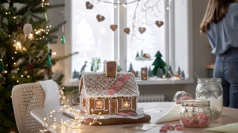 Tijdens kerst vieren we de mooie dingen in het leven, zoals een diner met je dierbaren. En zo’n diner kan op simpele wijze magisch gemaakt worden. De voorbereidingen op zich zijn al een feest voor jong en oud. Dek de tafel met vrolijk VINTER servies, tafellopers vol maretakken en een lichtsnoer in de vorm van blaadjes. Geef de borden een finishing touch met een maretak-decoratie die je kan bevestigen aan naamkaartjes. En zet voor de kleintjes een sprookjesachtig VINTERSAGA huisje van gemberkoek op tafel – maak het af met suiker en het lijkt of er verse sneeuw op de daken ligt.