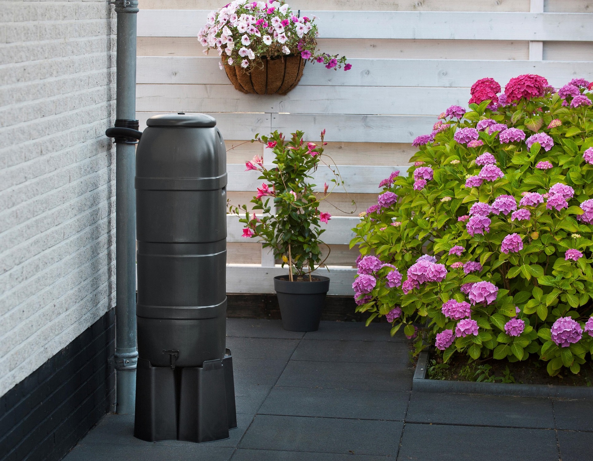 De Slimline regenton (in antraciet of donkergroen) is, zoals de naam als zegt, een slank model regenton en heeft toch nog een inhoud van 100 liter. En past daardoor zelfs op een balkon of klein terras. En je kan het regenwater gemakkelijk hergebruiken, doordat er een tapkraantje aan de voorkant zit.